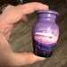 This elegant purple butterfly-themed keepsake urn offers a beautiful and serene resting place for your loved one's ashes. Made from high-quality aluminum, this urn features a scenic butterfly design that evokes peace and tranquility. The delicate butterflies against the vibrant purple background create a striking and peaceful visual, making this urn a fitting tribute to a cherished memory.